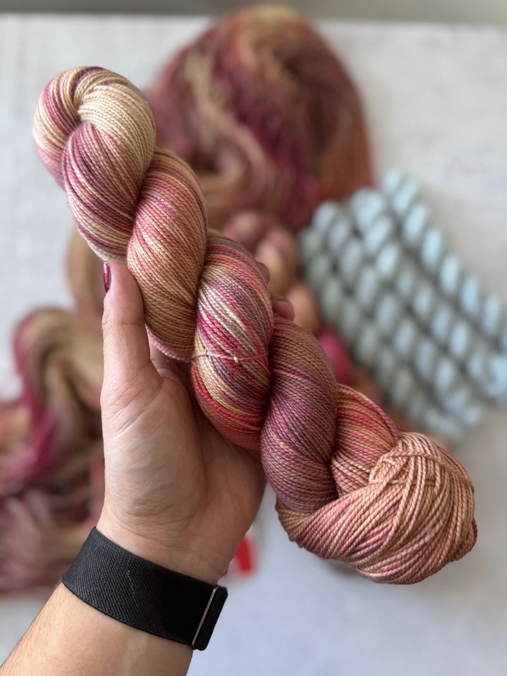 Small batch hand-dyed yarn is unique in that no two skeins are identical. If you are working on a project with multiple skeins, we highly recommend alternating them to prevent pooling and to blend them together.